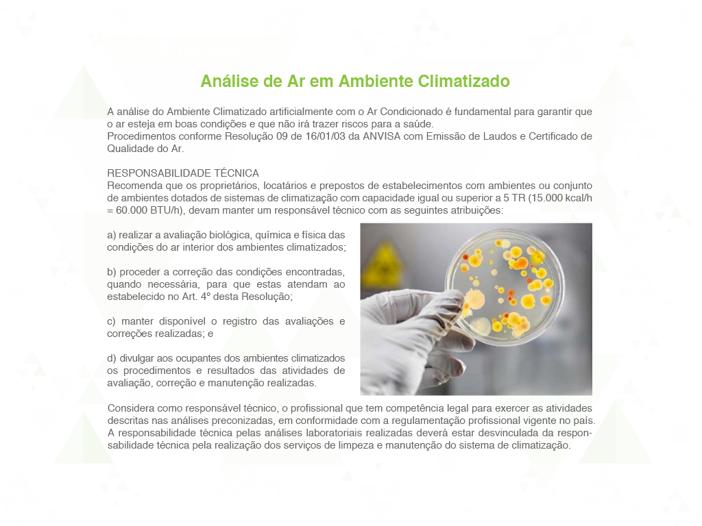 • Análise de Ar em Ambiente